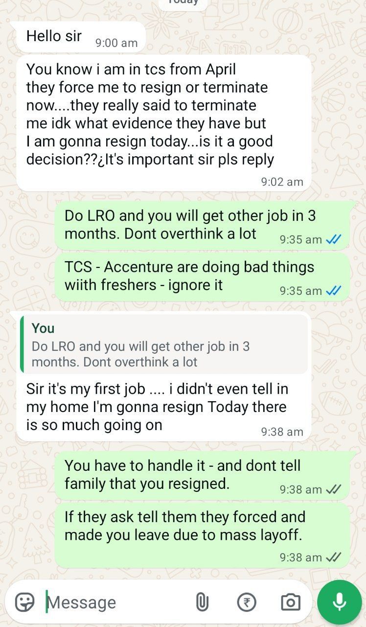 TCS fresher who got laid off and asked to resign forcefully -